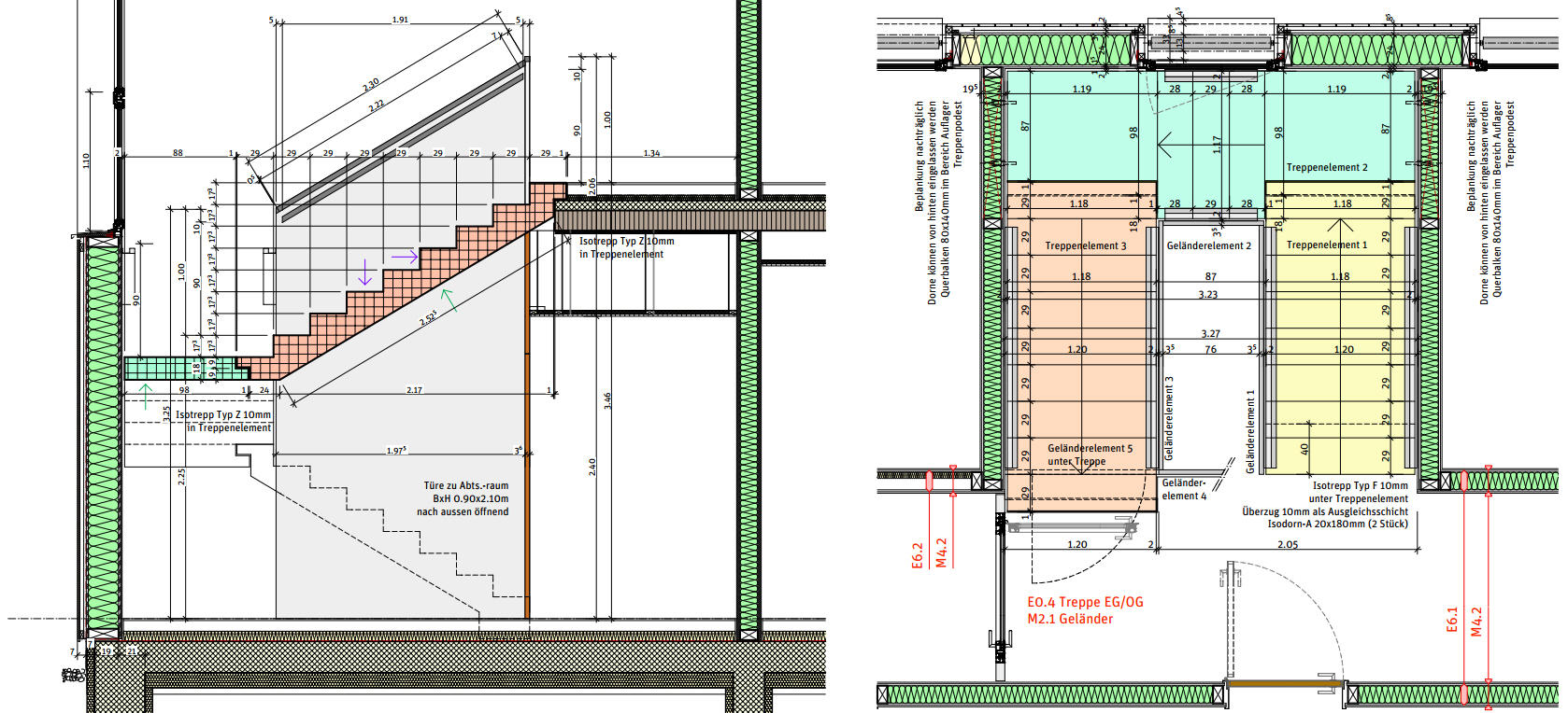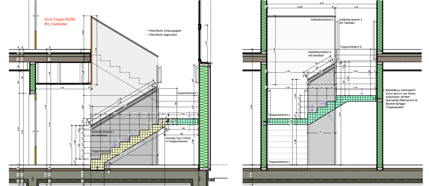 Podesttreppen Gerade Treppen können auch mit Hilfe einer Richtungsänderung Stockwerke verbinden. Hier unterbricht ein Podest den Treppenlauf und ermöglicht dadurch eine Drehung der Treppe um 90°oder 180°. |